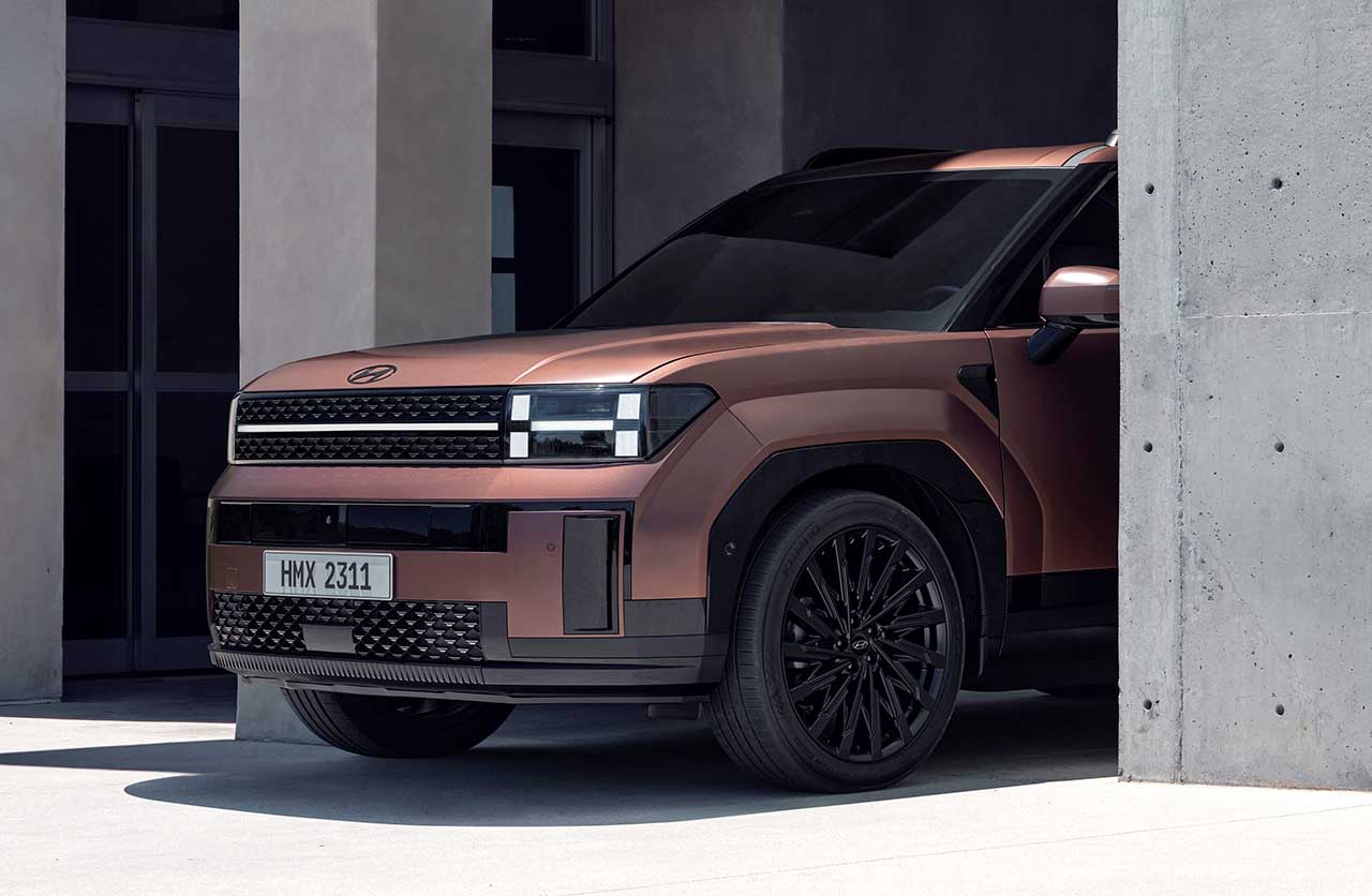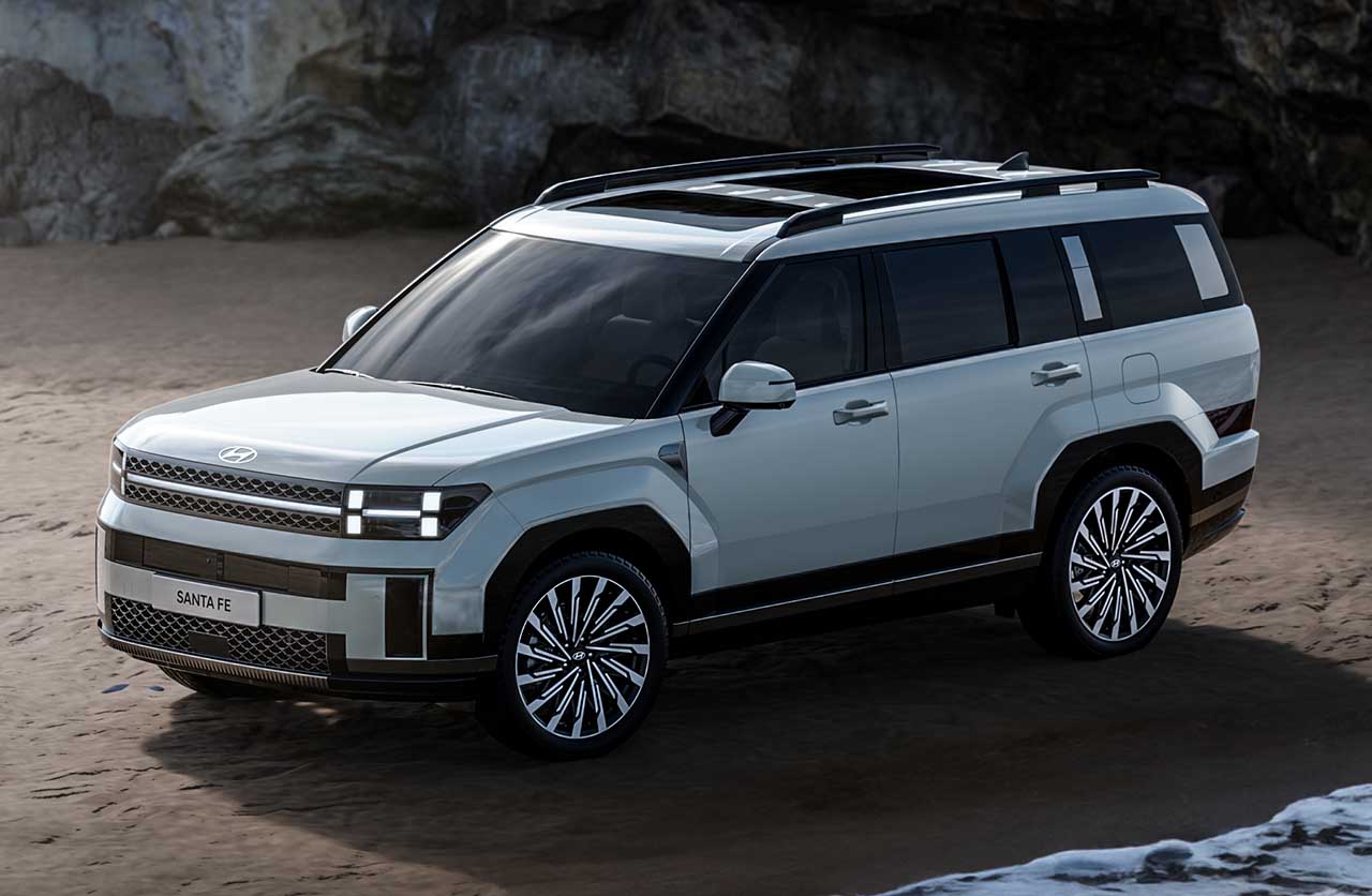 La Santa Fe además adoptó una mayor distancia entre los ejes (la marca no informó las dimensiones) junto a un voladizo delantero más corto y llantas de 21 pulgadas. Se combinan con las diversas líneas rectas de los laterales.