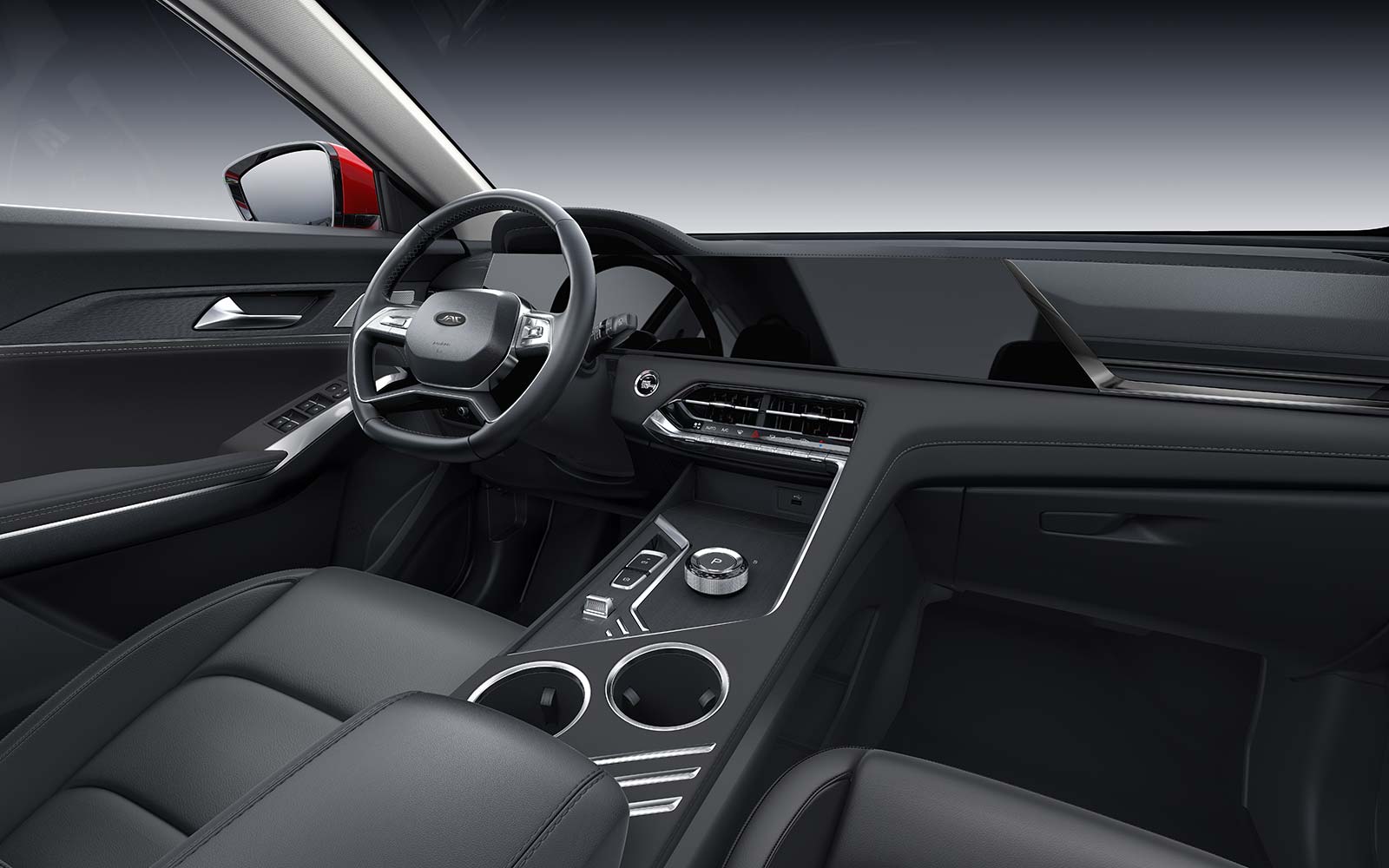 El equipamiento de la JS8 Pro contiene llantas de aleación de aluminio de 19 pulgadas, asientos delanteros eléctricos y con calefacción, tapizado de cuero ecológico, techo panorámico eléctrico y climatizador con salidas de aire traseras.