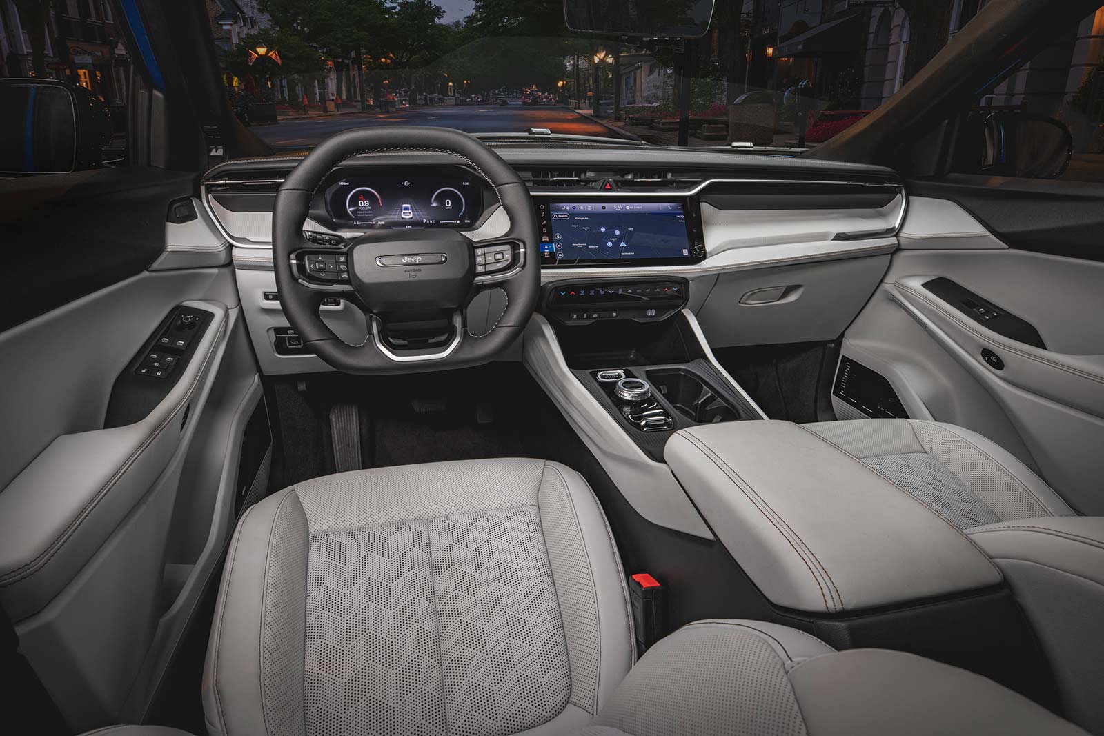 Puertas adentro, el Cherokee ofrece un nuevo diseño combinado con hasta un 30% más de capacidad de carga en comparación con el modelo anterior. También posee materiales libres de cuero y piezas recicladas.