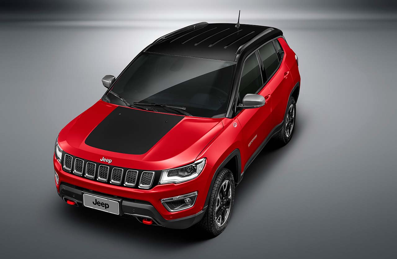En el exterior del Compass también sobresale el capot con dos colores y los ganchos rojos para las zonas delantera y trasera, mientras que el interior tiene tapizado de cuero con costuras y bordados exclusivos, junto con terminaciones de color rojo y alfombras que evitan el desborde.