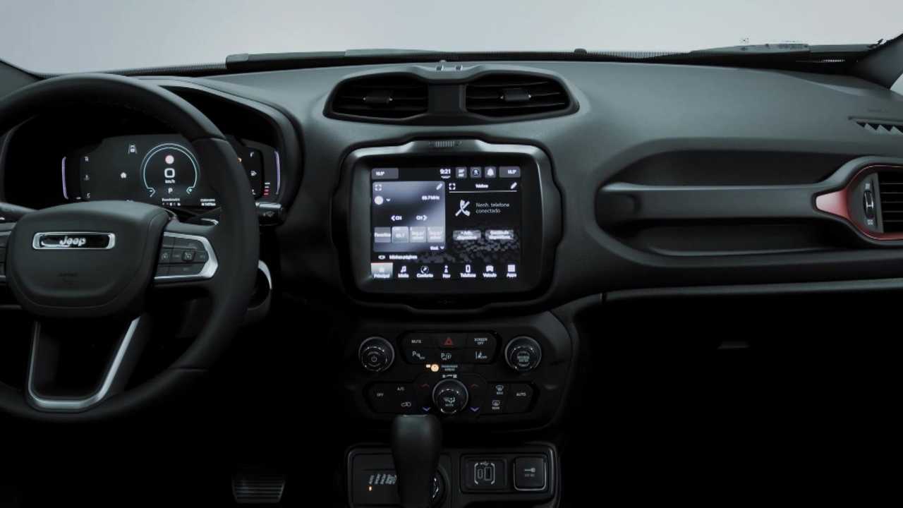 El nuevo Renegade además tiene cambios en el interior a través del volante, ahora con un estilo como el que posee el renovado Compass, junto con un nuevo tablero de instrumentos totalmente digital que recuerda al del Fiat Pulse.