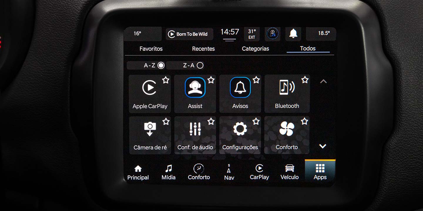 El Renegade además ofrece tablero digital de 7 pulgadas desde la versión Longitude, pantalla multimedia de 7” (sólo en la versión Sport) y 8,4” y una seguridad con seis airbags de serie y siete bolsas de aire (sumando la de rodillas) desde la Longitude.