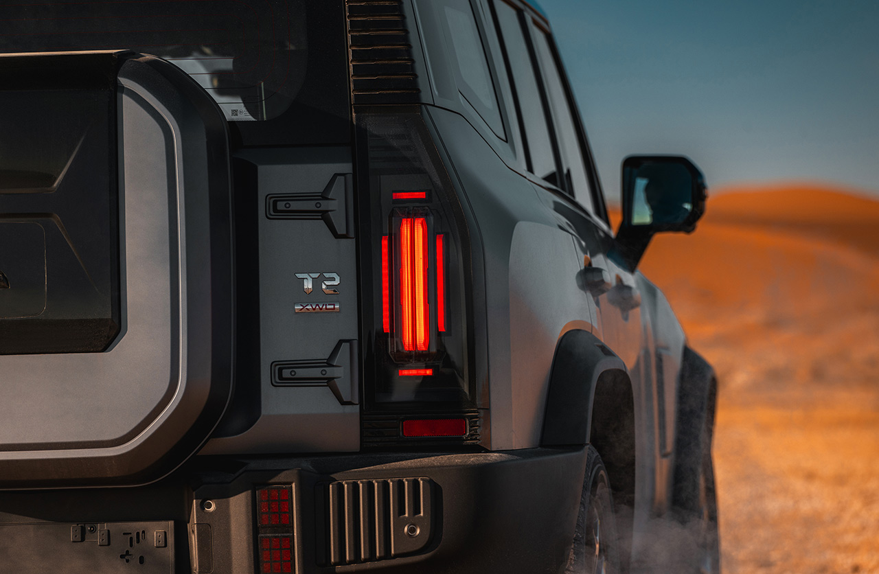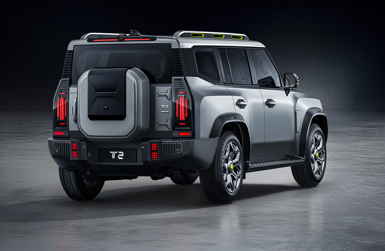 Al igual que el otro modelo, algo más pequeño, el T2 posee un diseño exterior que se destca por sus trazos rectos o “boxy”, como lo llama la marca. Mide 4785 mm de largo (el T1 mide 4705 mm) y tiene un despeje del suelo de 220 mm.