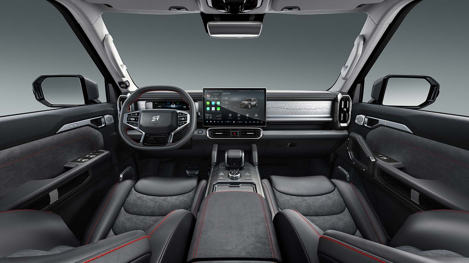 La seguridad brinda seis airbags, control de velocidad crucero adaptativo, detección de vehículos en ángulo ciego, frenado autónomo de emergencia, cámaras de estacionamiento 540°, mantenimiento activo de carril, control de descenso y radar de vadeo.