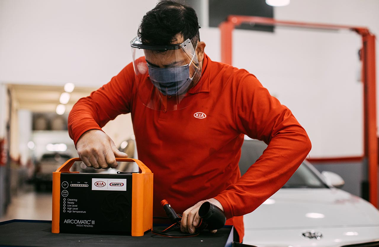 Mediante un convenio con la reconocida compañia Wynns e implementando un novedoso proceso, Kia asegura una eficiente desinfección del vehículo, garantizando la eliminación de bacterias, gérmenes y virus, incluyendo el coronavirus (Covid-19).