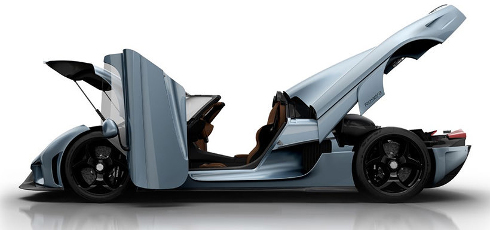 Otro punto destacado del Regera es su imagen, que bien representa su condición de superauto. La carrocería de 4,56 metros de largo, dos de ancho y poco más de uno de alto está construida en fibra de carbono, mientras que sus partes móviles se abren o cierran por medio de un sistema hidráulico, solución que también fue empleada para el alerón retráctil y la suspensión.