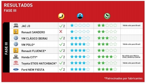 Los vehículos con peor desempeño de los ochos testeados en la Fase III de Latin NCAP fueron el Renault Sandero y el JAC J3.