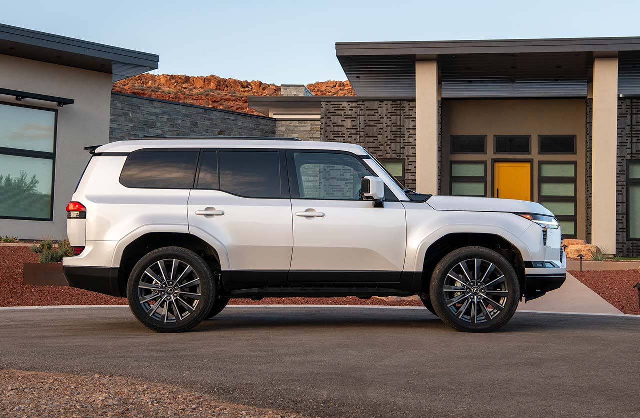 El nuevo modelo presenta un diseño exterior con el sello de Lexus junto con una longitud de 4,96 metros, 1,98 m de ancho (sin espejos), 1,93 m de altura y 2,85 m de distancia entre ambos ejes. Además, posee llantas de aleación de 22 pulgadas. En el interior hay siete plazas y una segunda y tercera fila de asientos rebatibles eléctricamente.