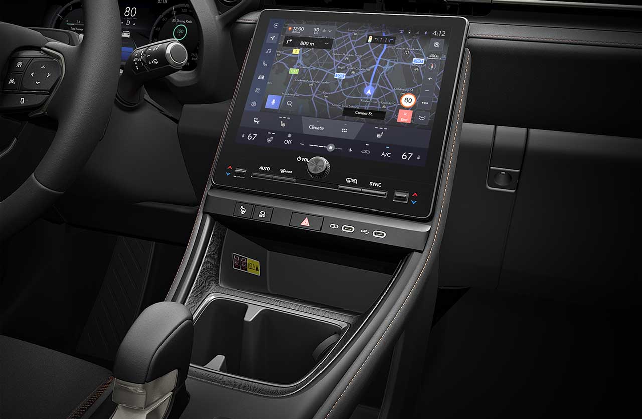 En su interior contiene un tablero digital de display de 12,3 pulgadas acompañado por una pantalla multimedia táctil de 9,8”. Además, posee tapizado de cuero ecológico perforado, consola central con nueva película Tsuyasumi (brinda un efecto carbón brillante), cargador inalámbrico, acceso y arranque sin llave, puertos USB de tipo C traseros, Android Auto y Apple CarPlay con conectividad inalámbrica y selector de modos de conducción.