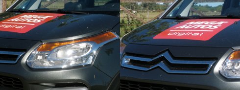 Otras señas particulares son el parabrisas inclinado y adelantado, y la parrilla superior realizada en dos largas láminas cromadas que se quiebran en el centro para forma el escudo de la marca. El techo abovedado es un giño de la marca a su rico pasado, especialmente al 2CV, vehículo de culto.