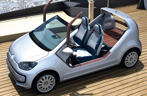 El up! azzurra sailing team ha sido diseñado para disfrutar del aire libre. Es un prototipo completamente abierto ya que carece de puertas y techos, y por tal motivo su interior está dotado de materiales altamente resistentes al agua y con detalles que lo emparentan con un bote de lujo. Tal como expresa Volkswagen, es un vehículo surgido con “espíritu mediterráneo”.