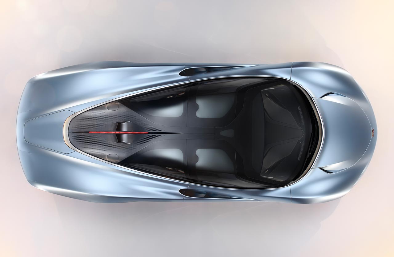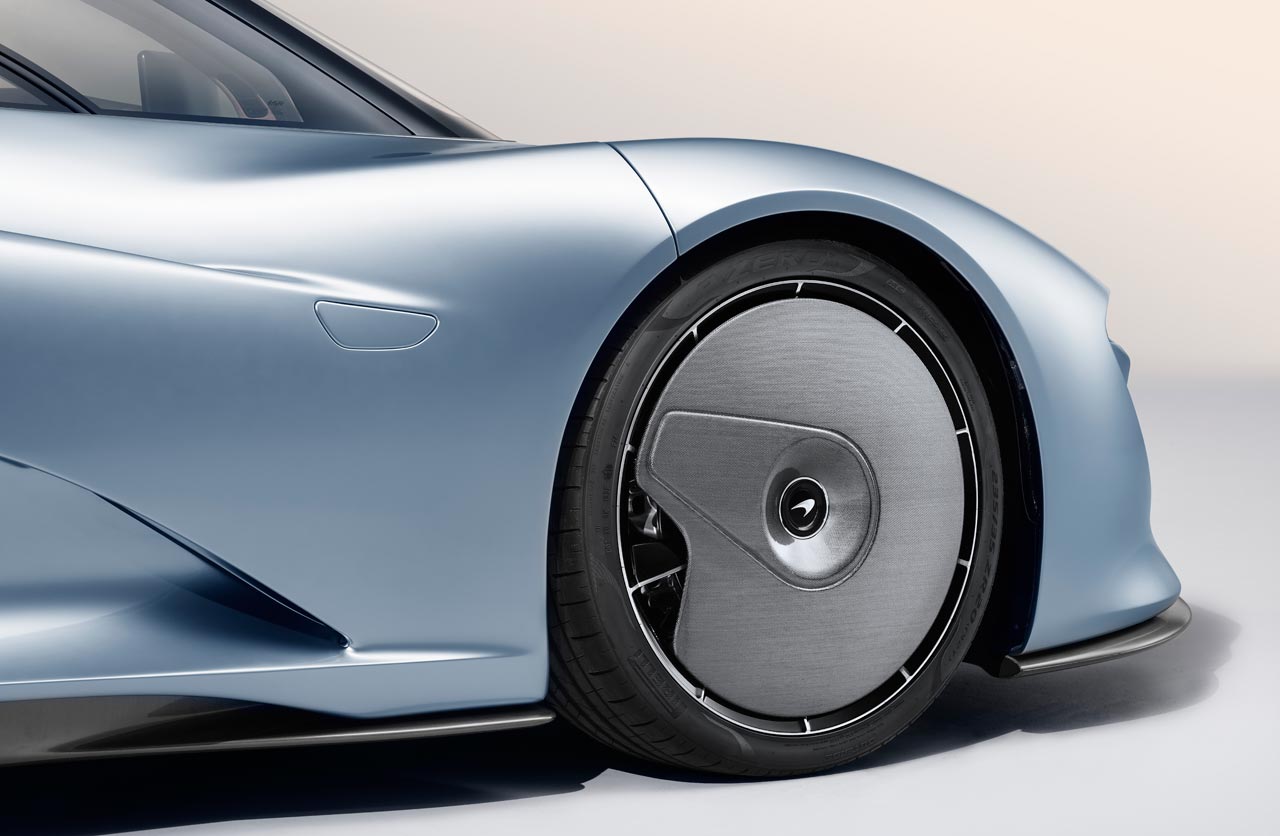En el interior, el Speedtail se caracteriza por la posición de manejo central y los dos asientos laterales, mientras que el parabrisas posee un cristal electrocrómico que se oscurece a través de un botón. De esta forma, no es necesaria la presencia de parasoles.