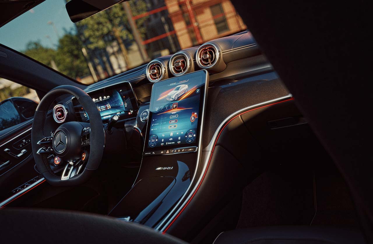 El propulsor trabaja junto a la caja AMG Speedshift TCT 9G de doble embrague que, según la marca, ofrece cambios de marcha cortos y respuesta rápida. Además, incluye un modo manual con levas galvanizadas tras el volante.