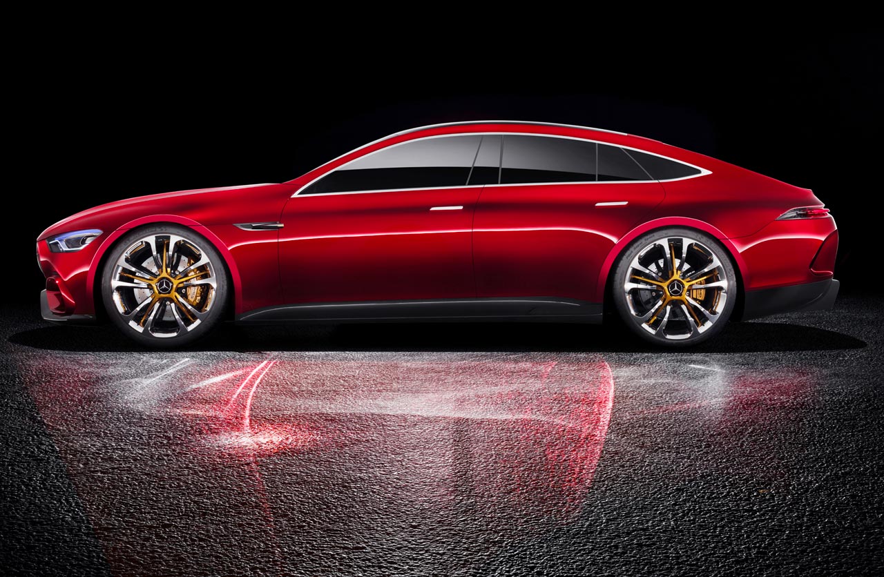 El concept car es el tercer modelo de la familia GT, que ya posee los SLS AMG y AMG GT. Se caracteriza por contar con una carrocería con cuatro puertas laterales y cuyo diseño trasero lo acerca a un modelo cupé.