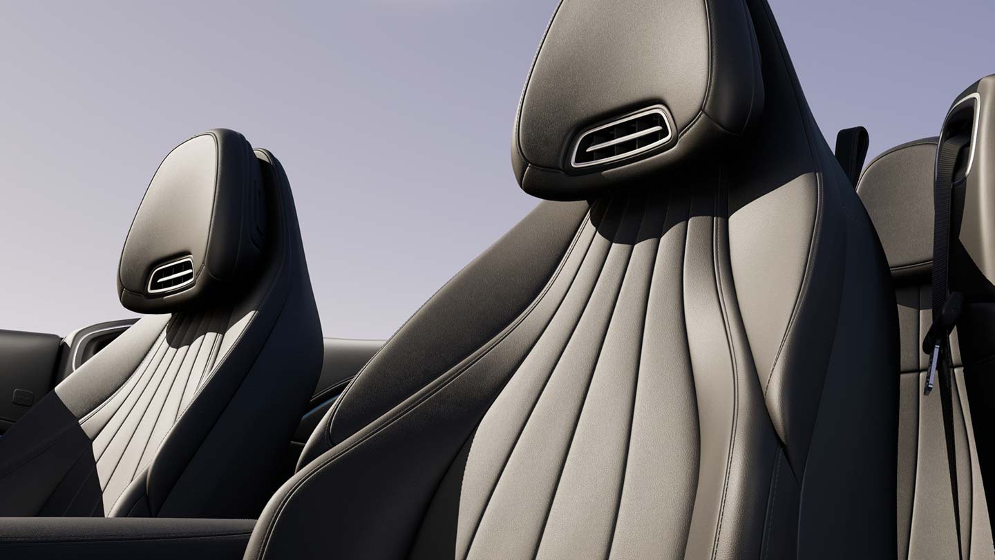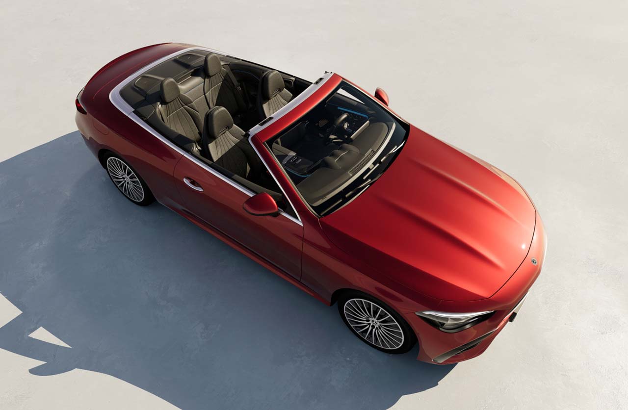 El CLE Cabrio también tiene un paquete que incluye deflectores de viento automáticos (Aircap), calefacción para la cabeza (Airscarf) para el conductor y el acompañante. Sus opcionales destacados incluyen Paquete Night, llantas AMG 19” negras y capota gris o roja.