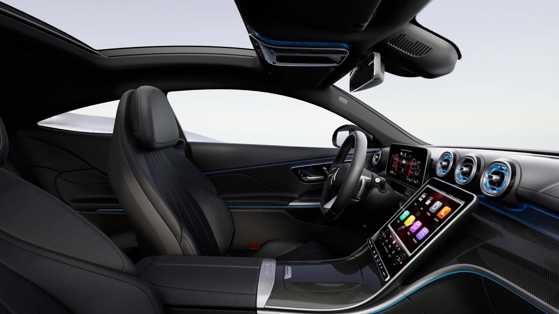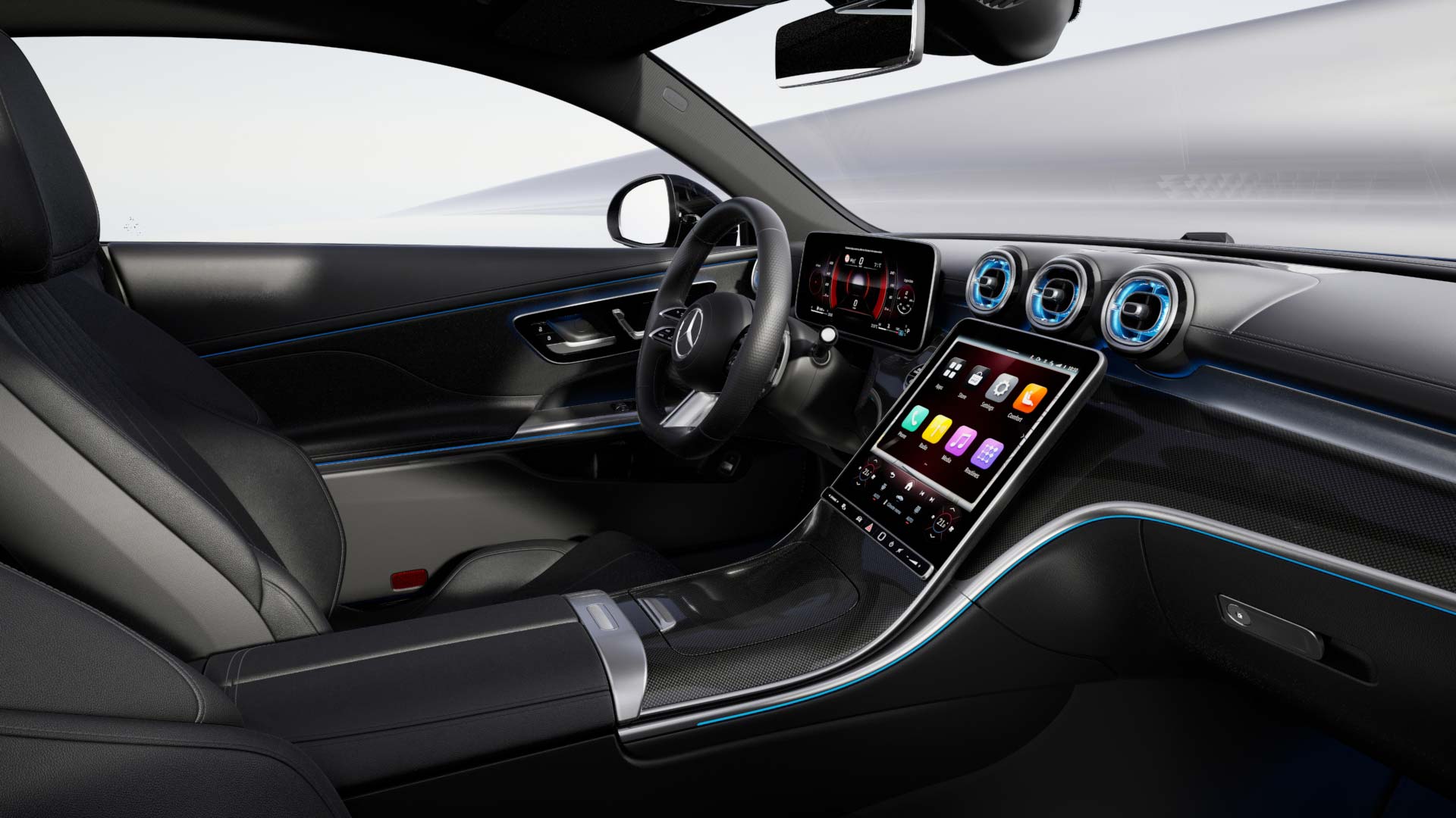 El equipamiento incluye AMG Line exterior, Paquete Night, llantas de aleación AMG de 19”, asientos deportivos, eléctrico y con tapizados en símil cuero, sistema multimedia MBUX, cargador inalámbrico, iluminación de ambiente, cierre de confort de la tapa del baúl, ayuda activa para estacionar, techo corredizo panorámico (Coupé) y capota de tela con accionamiento eléctrico en unos 20 segundos y hasta 60 km/h.