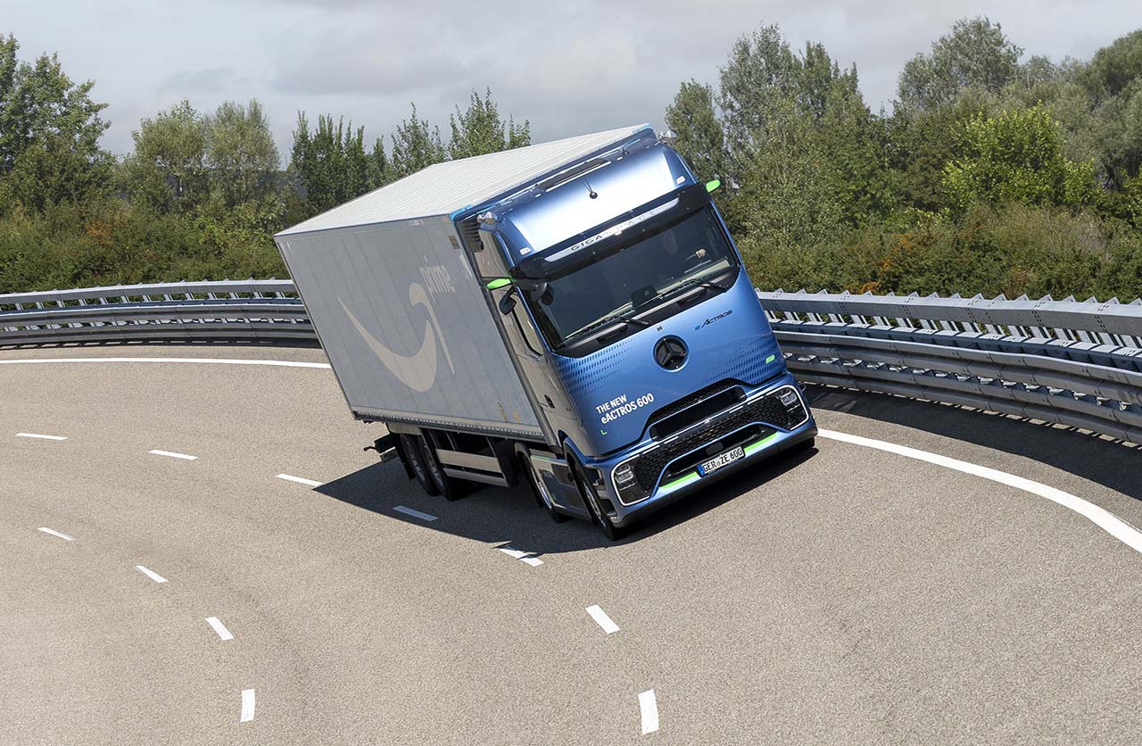 El camión eléctrico eActros 600 para transporte de larga distancia debutó mundialmente a finales de 2023. Sus baterías, con una capacidad total superior a los 600 kilovatios-hora (kWh), ofrecen una autonomía de 500 kilómetros sin recargas intermedias, en condiciones reales con un peso bruto combinado de 40 toneladas. Este alcance puede incrementarse dependiendo del estilo de conducción y la ruta.