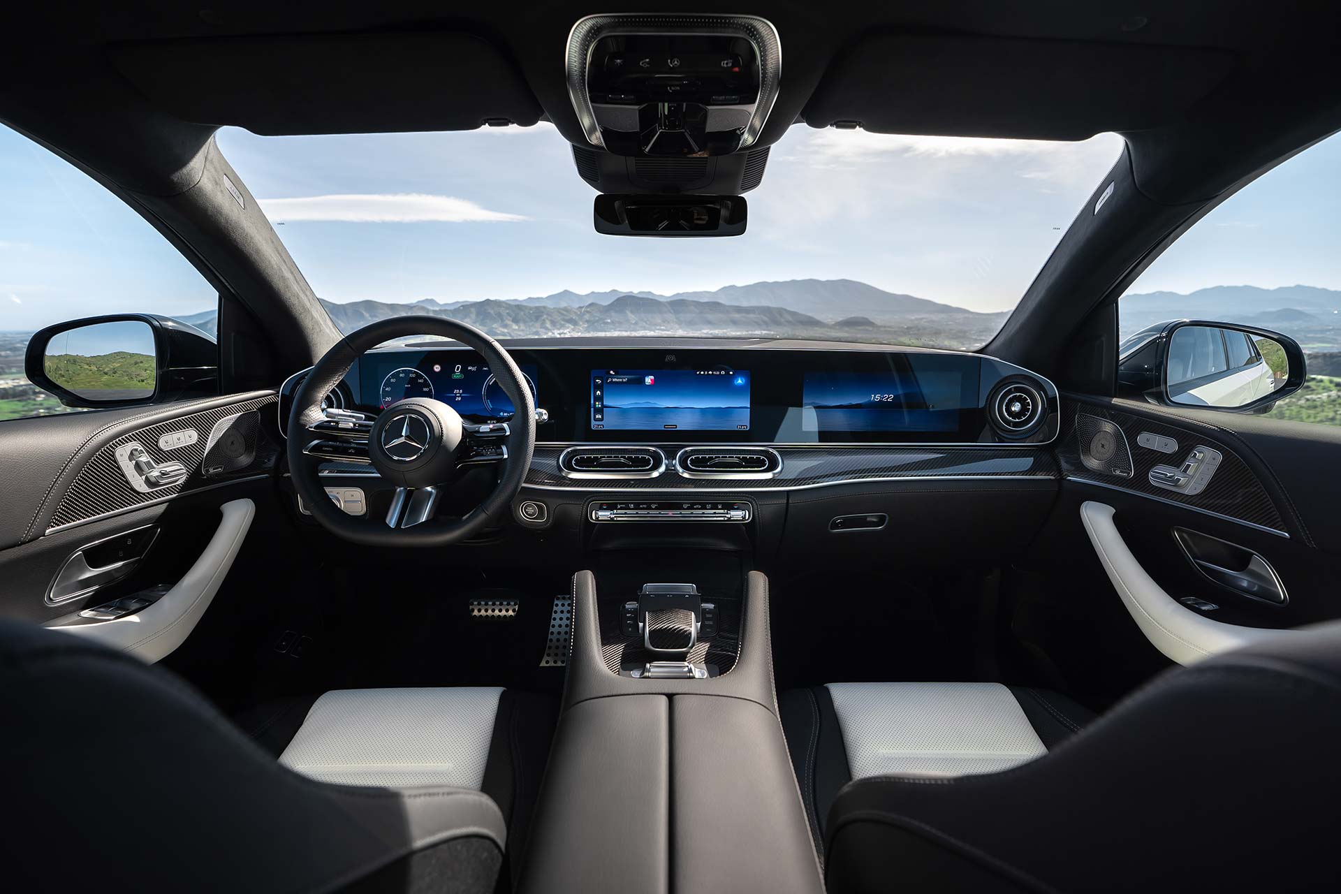 Los cambios estéticos continúan en la parte trasera, donde también se destacan las luces con presencia de estrellas, mientras que el renovado interior tiene un panel de a bordo que aloja a la pantalla MBUX Superscreen, una superficie única de cristal con tres pantallas de 12,3 pulgadas.