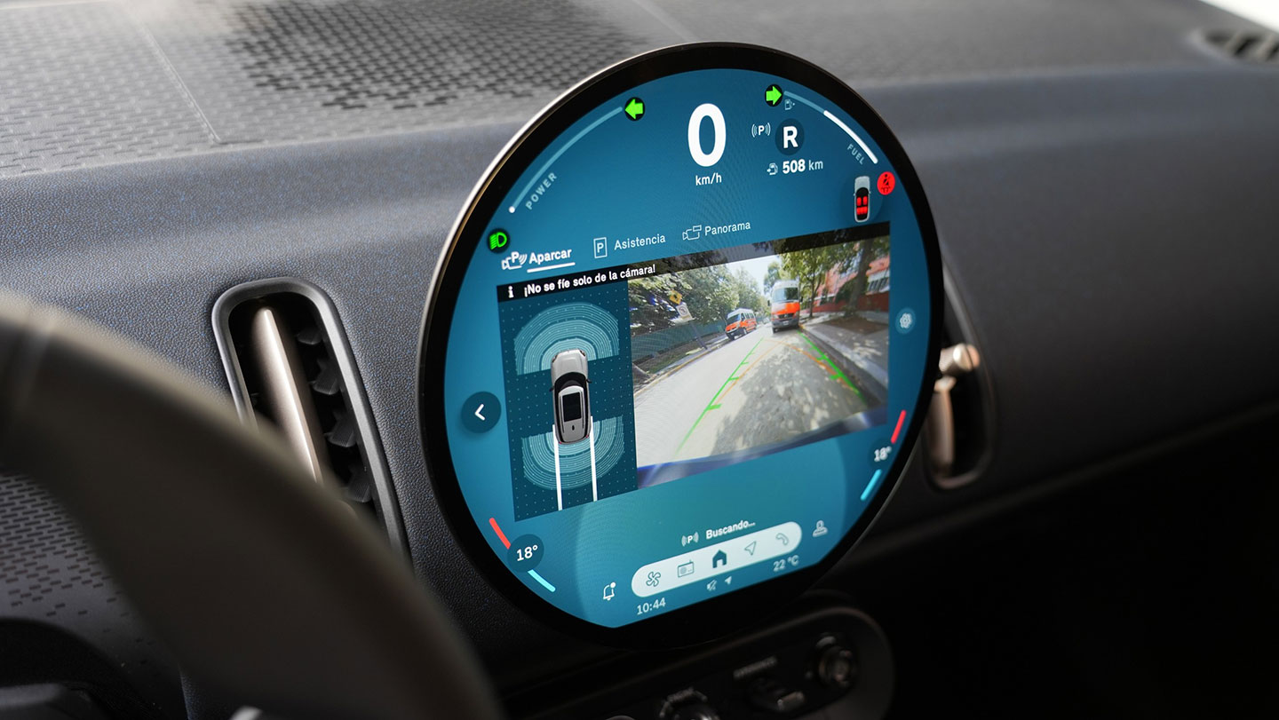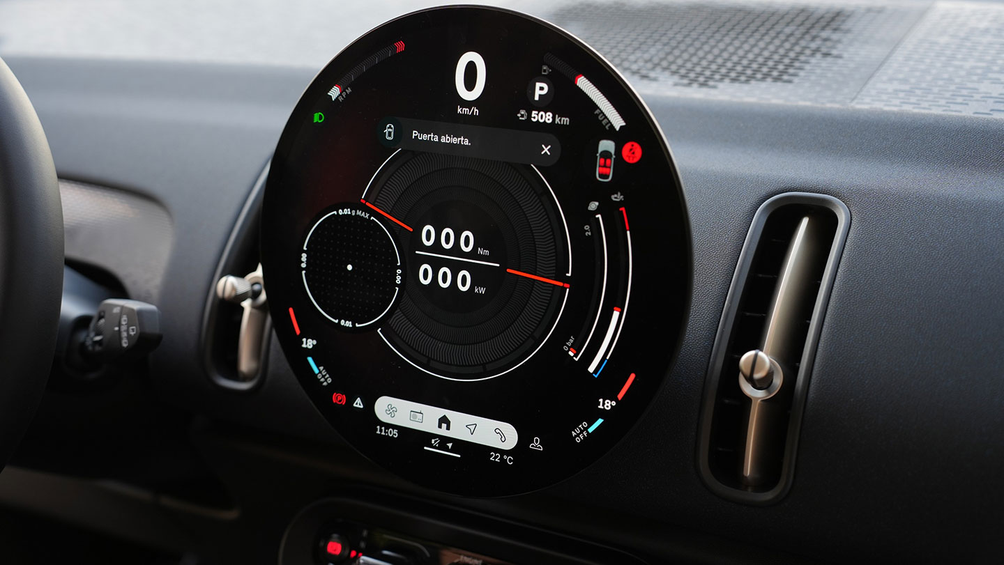 El equipamiento del Countryman D Essential incluye llantas de aleación de 17”, luces LED, pantalla circular OLED de 240 mm de diámetro, servicios remotos y gratuitos de Mini Connected, tapizado de tela, cámara trasera, asistente de reversa y seis airbags.