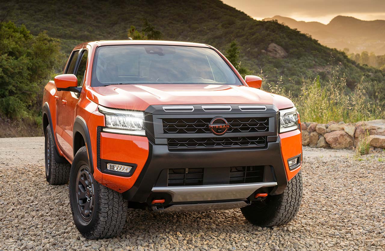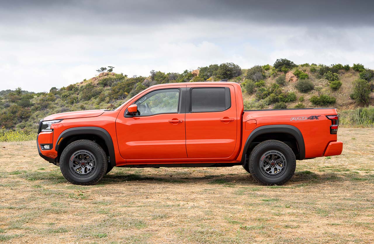Las novedades se extendieron a los laterales a través de las nuevas llantas de aleación de 17 pulgadas, mientras que la zona trasera de la Frontier Pro-4X muestra un nuevo aplique en el portón de acceso a la caja de carga. También es novedoso el color naranja de la carrocería.