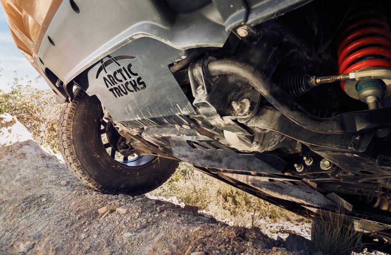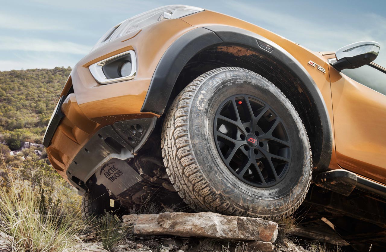 Lo primero que llama la atención de esta opción es la estética, ya que cuenta con nuevas llantas de aleación negras de 17 pulgadas con neumáticos off road con 32 pulgadas (cifra representada en la denominación, junto con la sigla de Arctic Trucks).