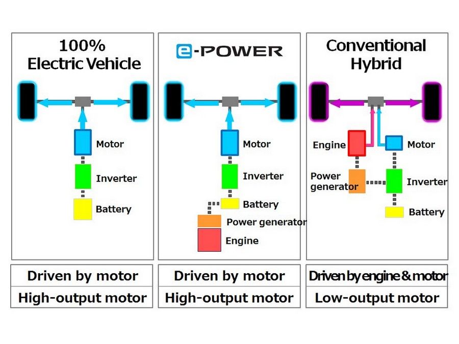 A diferencia de otros híbridos o eléctricos, que cuentan con un cargador externo, el sistema e-Power tiene un motor naftero que funciona únicamente como generador de electricidad, lo que permite cargar la batería para extender la autonomía.