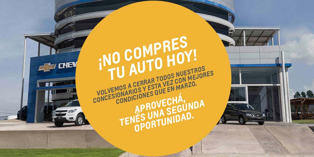 El 2 de marzo pasado, bajo el lema “¡No compres tu auto hoy!”, Chevrolet cerró por un día los 53 Concesionarios y 110 puntos de venta de la red oficial que la marca tiene en el país para preparar y comunicar una promoción exclusiva.