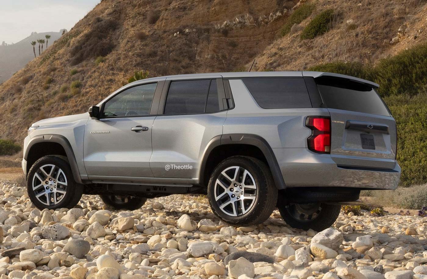 Las recreaciones de la “Colorado SUV” de Theottle muestran la posible estética exterior del SUV de la familia, vehículo que se destaca por combinar el chasis de largueros (como la pick up) con el interior con tres filas de asientos y siete plazas.