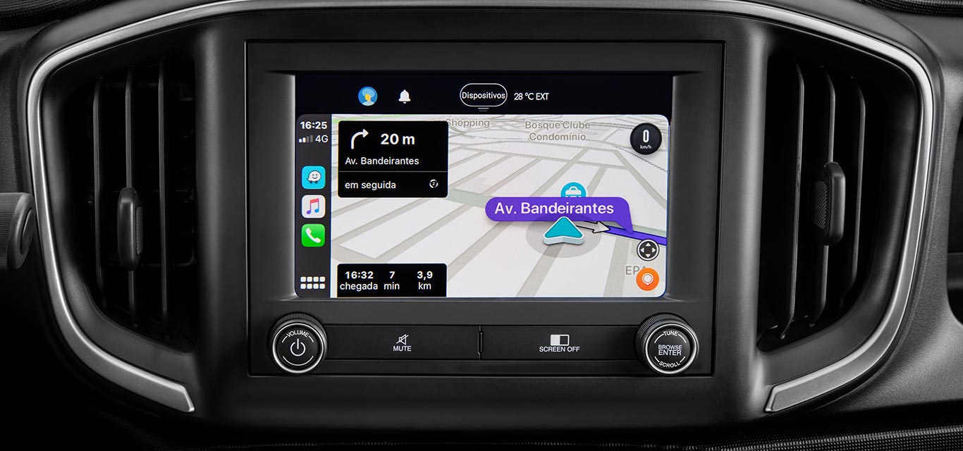 En el interior, la nueva Strada cuenta con piezas similares a las del Uno, por ejemplo, el tablero de instrumentos con el velocímetro en el centro. Además, incorpora el sistema Uconnect con pantalla táctil de 7” y conexiones con Android Auto y Apple CarPlay.