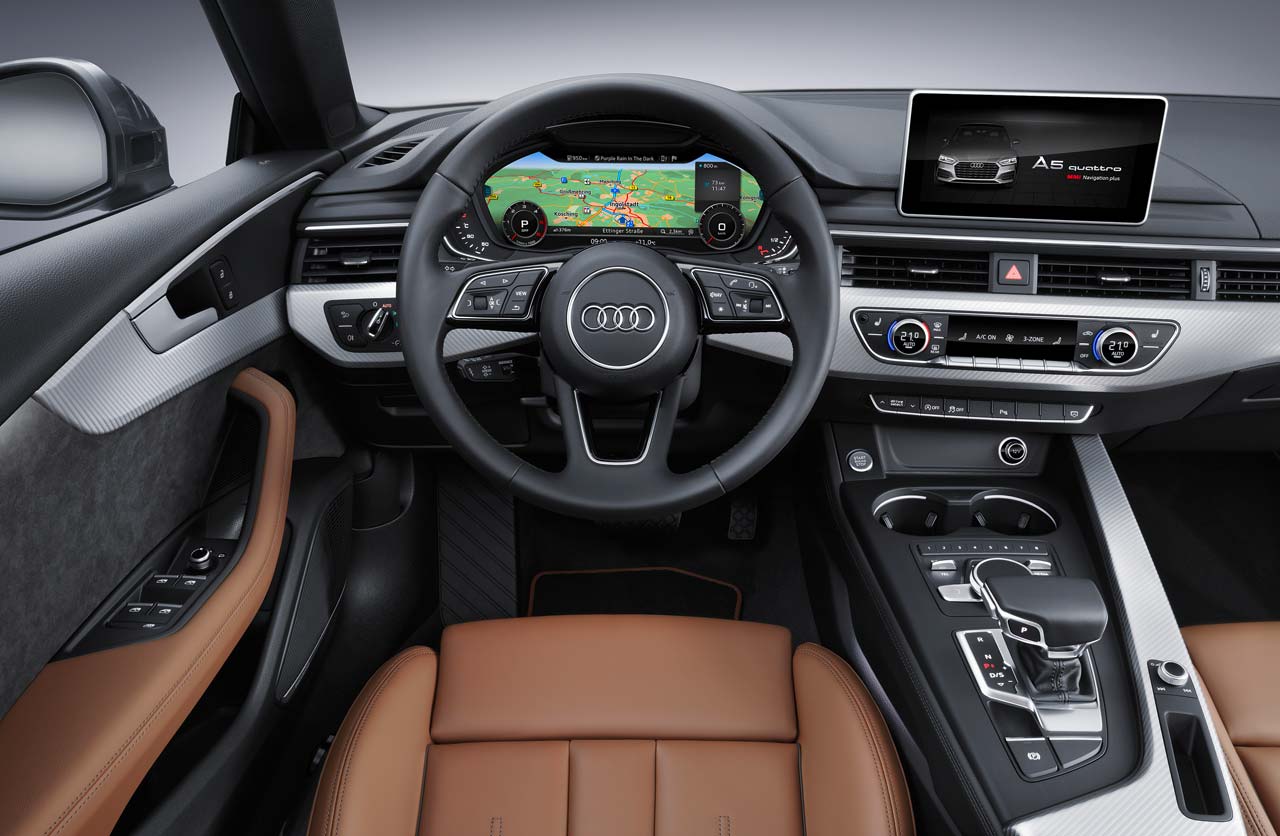 Si nos referimos al equipamiento, el flamante A5 Sportback incluye luces de xenón con luces diurnas de LED, iluminación interior de LED, frenado automático, asientos deportivos con función neumática de masaje, control de velocidad crucero adaptativo, asistente para la conducción en embotellamientos, reconocimiento de señales de tránsito y asistentes de estacionamiento y de giro.