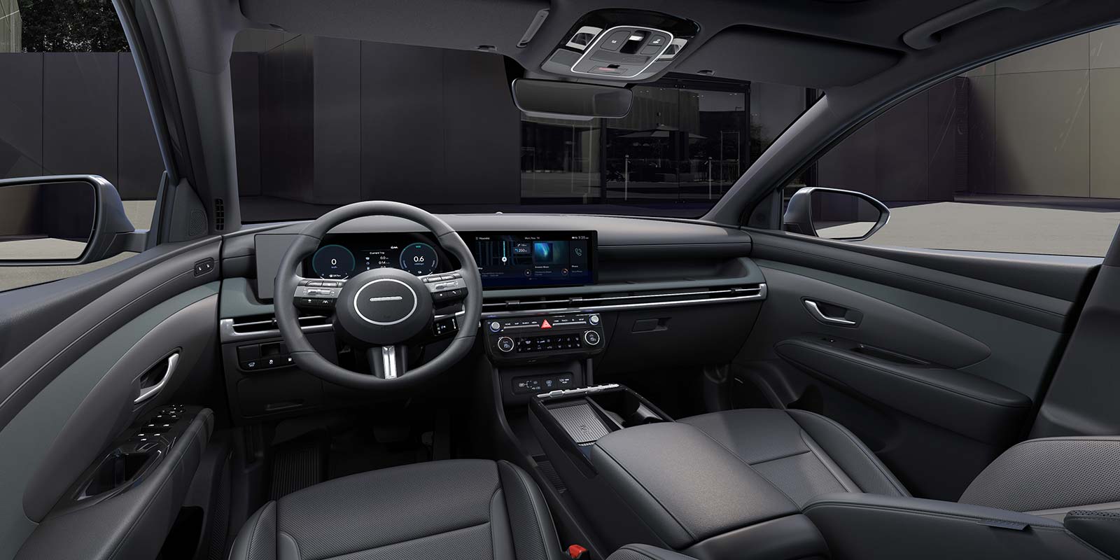 En su interior, la Tucson le dio la bienvenida a un nuevo panel de a bordo con cambios para las salidas de aire, el tablero y el sistema multimedia; estos dos últimos están integrados a través de una doble pantalla curva de 12,3 pulgadas cada una.