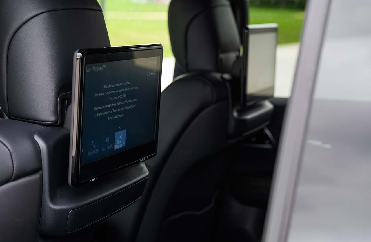 También viene con pantalla central de 12,3 pulgadas, conectividad con Android Auto y Apple CarPlay, navegación audio premium con 13 parlantes y subwoofer, tablero con pantalla de 7”, cargador inalámbrico de teléfono, Head up Display y dos pantallas táctiles de entretenimiento con 11,6” en la segunda fila de asientos. La VX además tiene techo solar eléctrico.