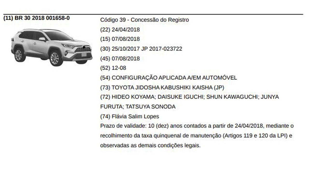 Presentada por primera vez en marzo, la nueva generación del Toyota RAV4 comienza a generar expectativas en la región. En Brasil, el sitio Motor 1 publicó las imágenes del registro del diseño industrial, pertenecientes al Instituto Nacional de la Propiedad Industrial (INPI).