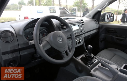 Puertas adentro tenemos asientos regulables en altura; tapizados tela Spacer; volante regulable en altura y profundidad; climatizador semi-automatico Climatic; luneta térmica; limpiaparabrisas con intermitente regulable; consola central con apoyavasos; Radio 2DIN con CD, MP3, USB, SD Card, entrada aux y conectividad i-Pod y Bluetooth (Ofrecida desde octubre en toda la gama Amarok); guantera con llave; y parasoles con espejos y portadocumentos.
