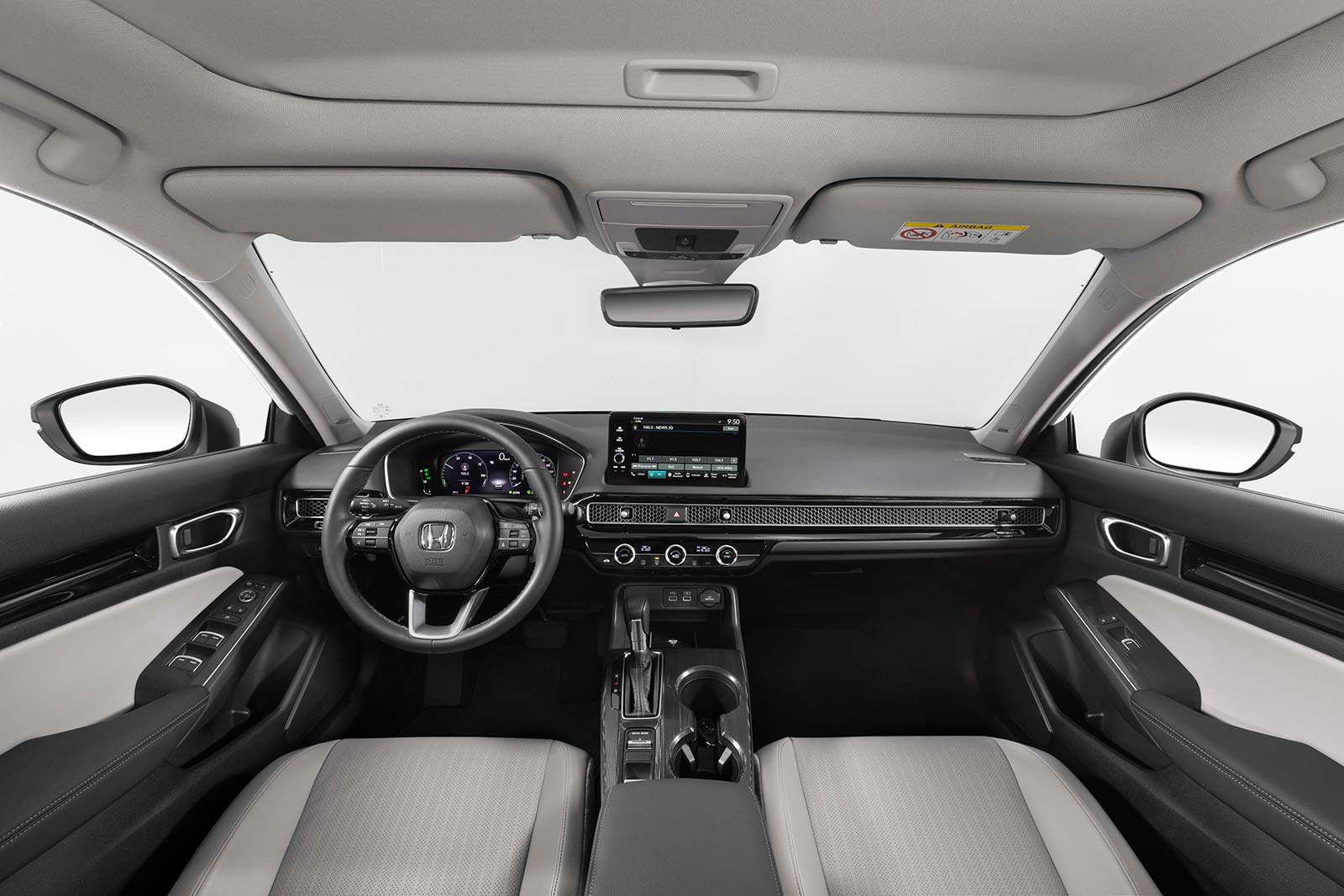 Puertas adentro, el nuevo Civic tiene un panel de a bordo con estilo horizontal junto con un tablero digital de 10,2 pulgadas, asientos delanteros eléctricos, pantalla multimedia de 9”, cargador inalámbrico y techo corredizo.