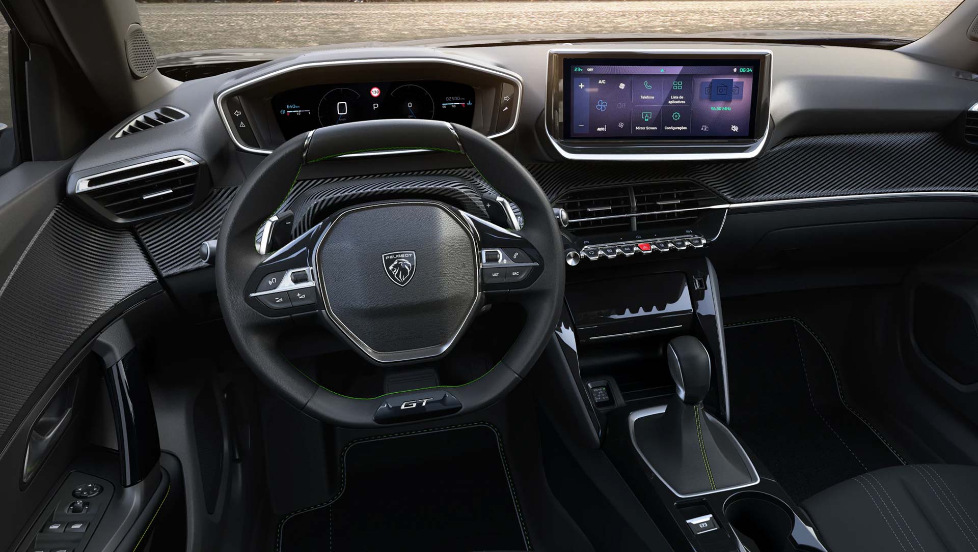 En la cima de la gama, el 2008 GT posee carrocería bitono, parrilla con la misma pintura de la carrocería, luces Full LED delanteras, tablero digital 3D, tapizado de cuero con costuras verdes, techo corredizo panorámico y volante con levas.