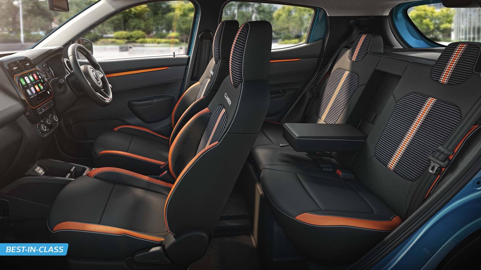 La versión Climber llama la atención con su personalización con rieles en el techo, llantas oscuras y color naranja presente en los paragolpes y los espejos y, en el interior, en la consola central, los tapizados y las puertas.