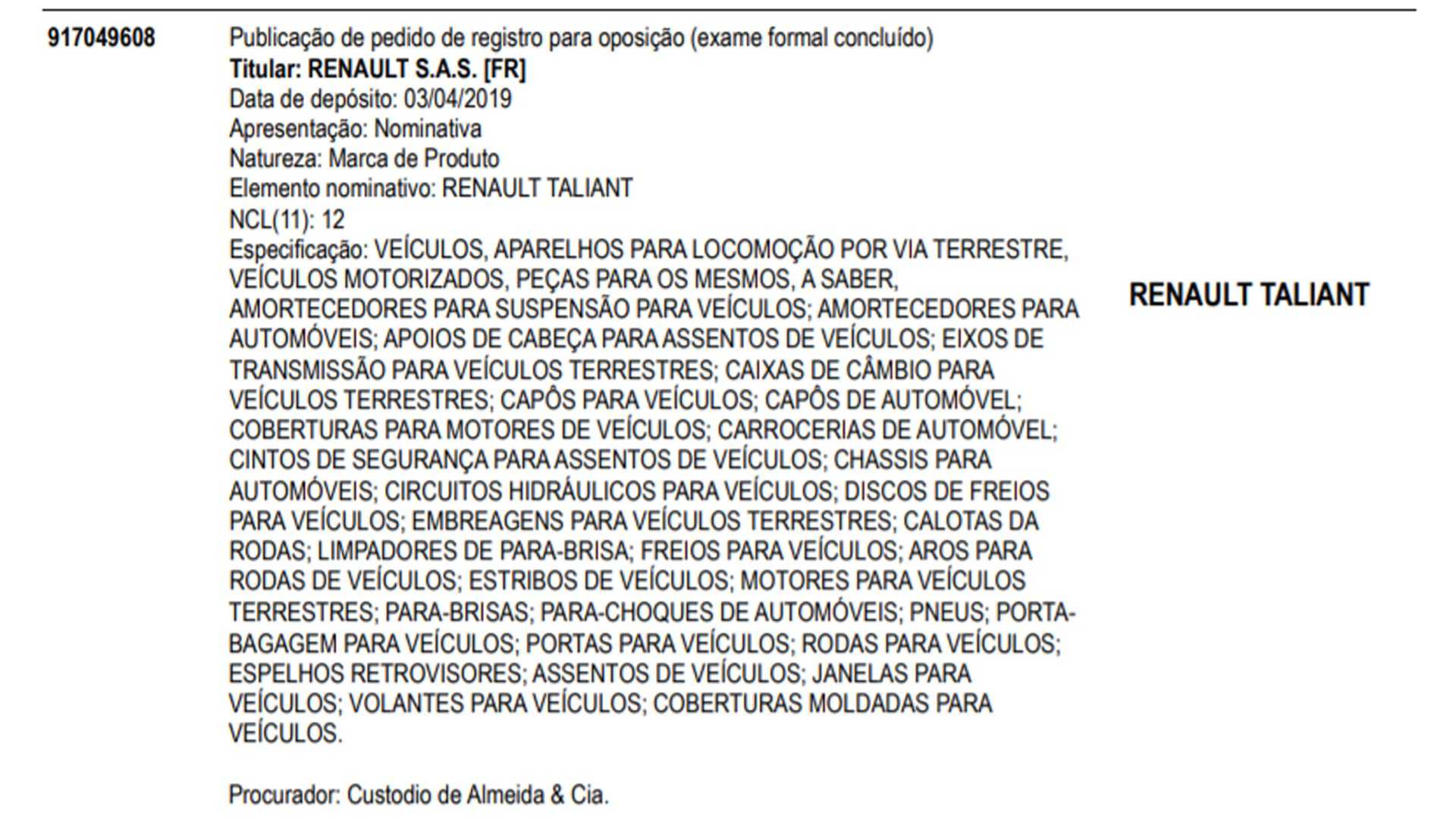 En Brasil comenzaron a anticipar la nueva generación del Renault Logan para esta parte del mundo. Motor 1 divulgó imágenes de la patente del vehículo (con imágenes 3D) y recreaciones a cargo de Kleber Silva. Además, el modelo regional luce un nuevo nombre: Taliant.