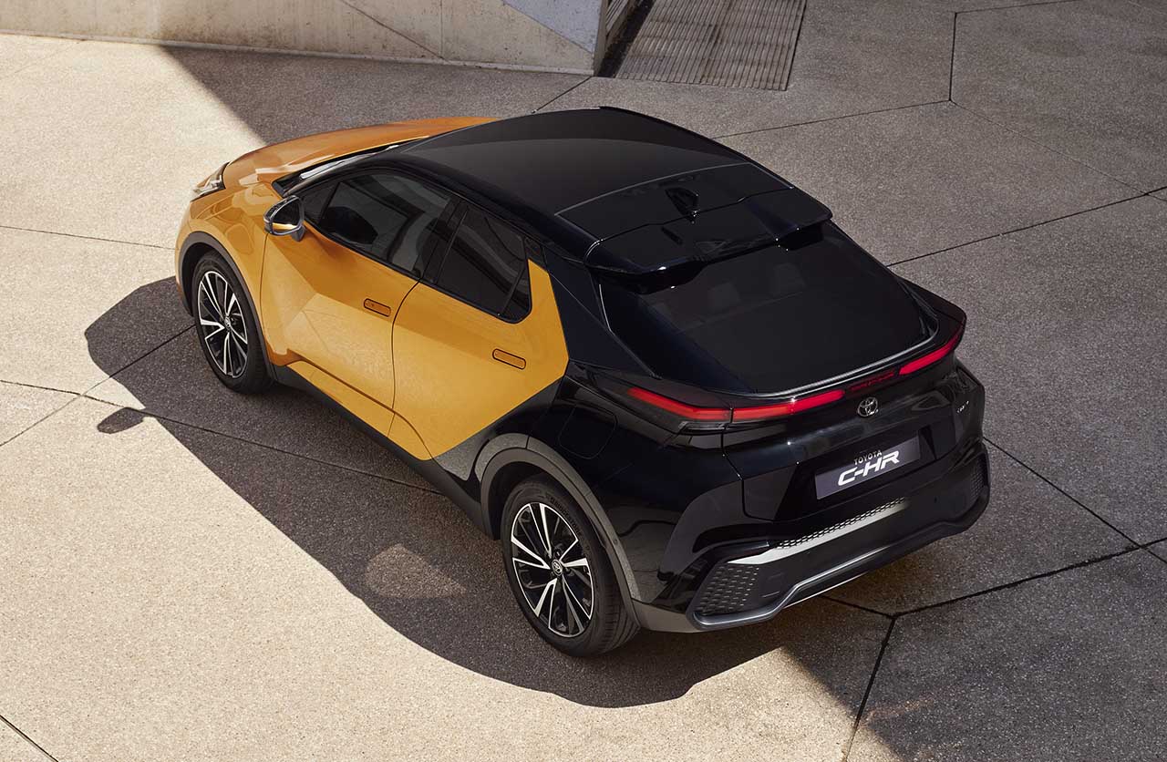 En los sectores laterales del nuevo C-HR se destacan las llamativas líneas como las que están presentes en la zona trasera, con una marcada caída de los parantes y la luneta. Además, se luce el doble color de la carrocería.