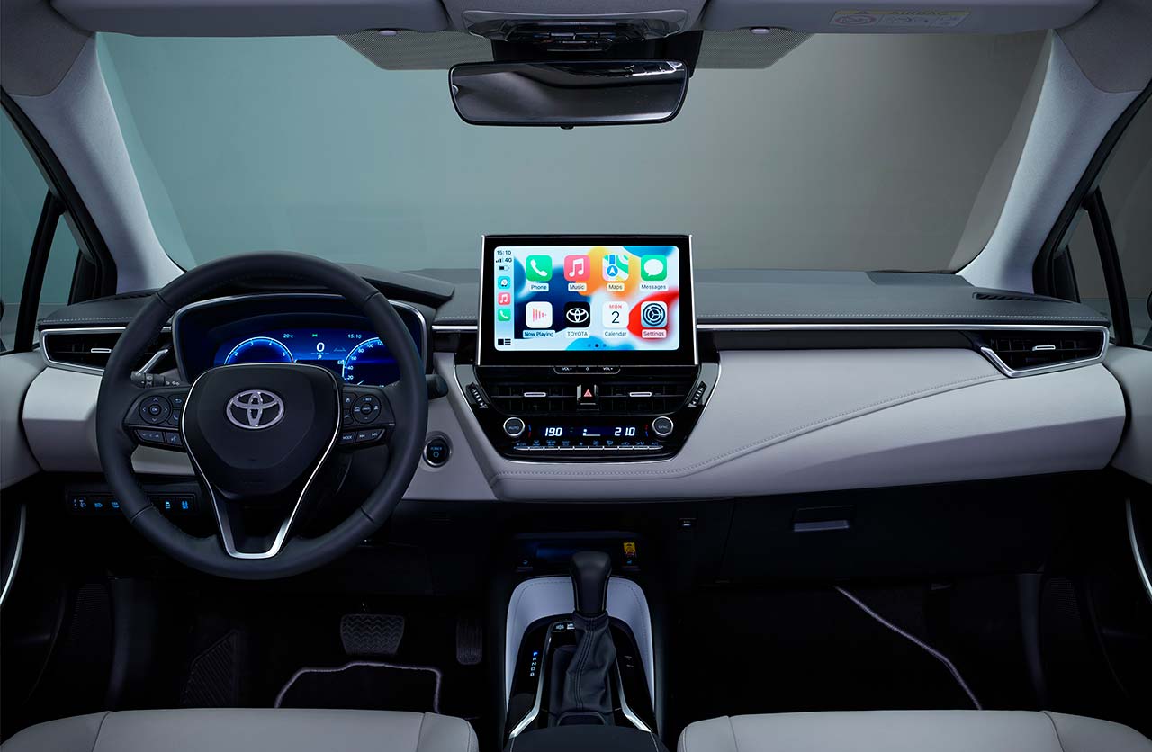 En el interior, el renovado Corolla recibió un nuevo sistema multimedia con pantalla táctil de 10,5 pulgadas. El tablero también es nuevo y digital a través de una pantalla de 12,3 pulgadas y con cuatro opciones de personalización.