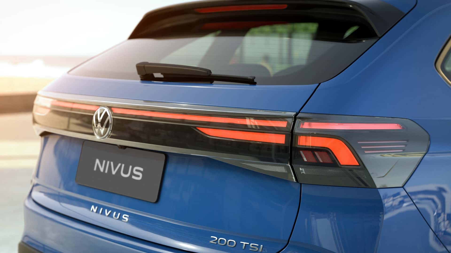 El Nivus adoptó cambios exteriores principalmente en el sector delantero, donde posee la presencia de una nueva parrilla que ahora tiene forma rectangular y una luz LED diurna que la recorre. Está acompañada por las flamantes ópticas y el nuevo paragolpes.