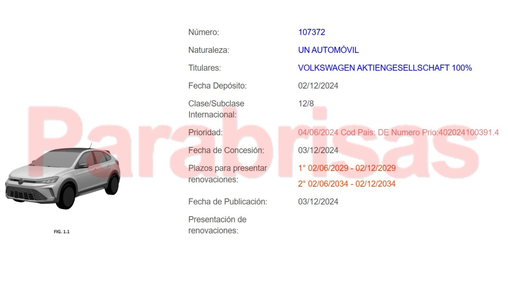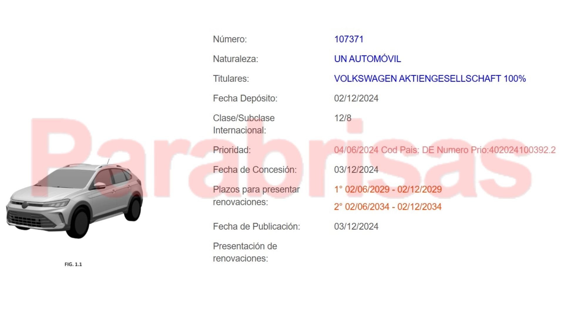 El Volkswagen Nivus recibió su primera renovación recientemente en Brasil, país en el que es producido para la región. Ahora, la marca alemana registró el diseño del modelo en Argentina, donde llegará en 2025.