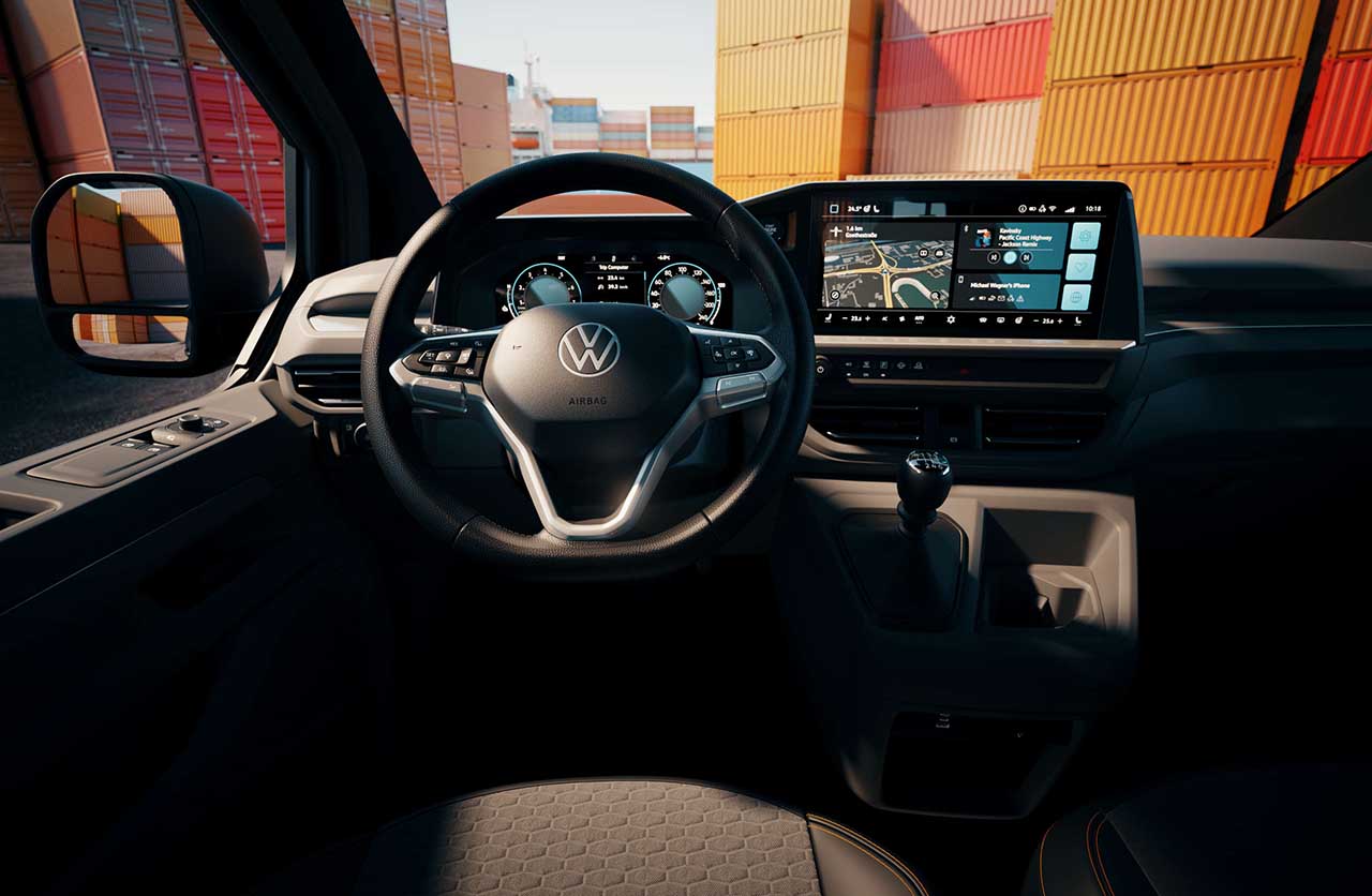 El equipamiento del utilitario cuenta con volante multifunción, freno de estacionamiento electrónico y asistencias a la conducción como mantenimiento de carril, frenada de emergencia autónoma y Dynamic Road Sign Display con aviso de sentido contrario.
