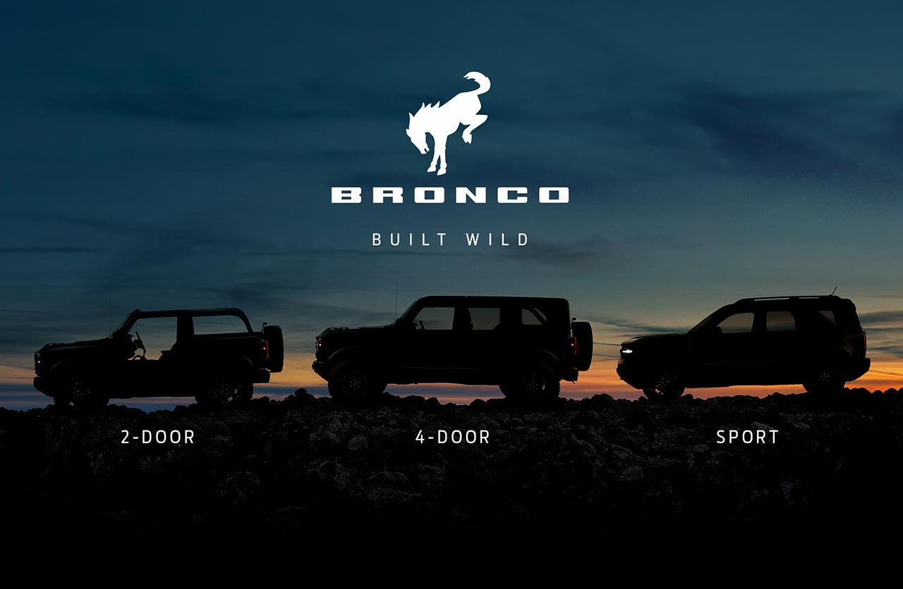 La nueva familia off road incluye el modelo más grande “Bronco” con carrocerías con dos o cuatro, junto con el Bronco Sport, un SUV de menor tamaño. Los tres fueron anticipados con una imagen en el que se lucen sus siluetas.