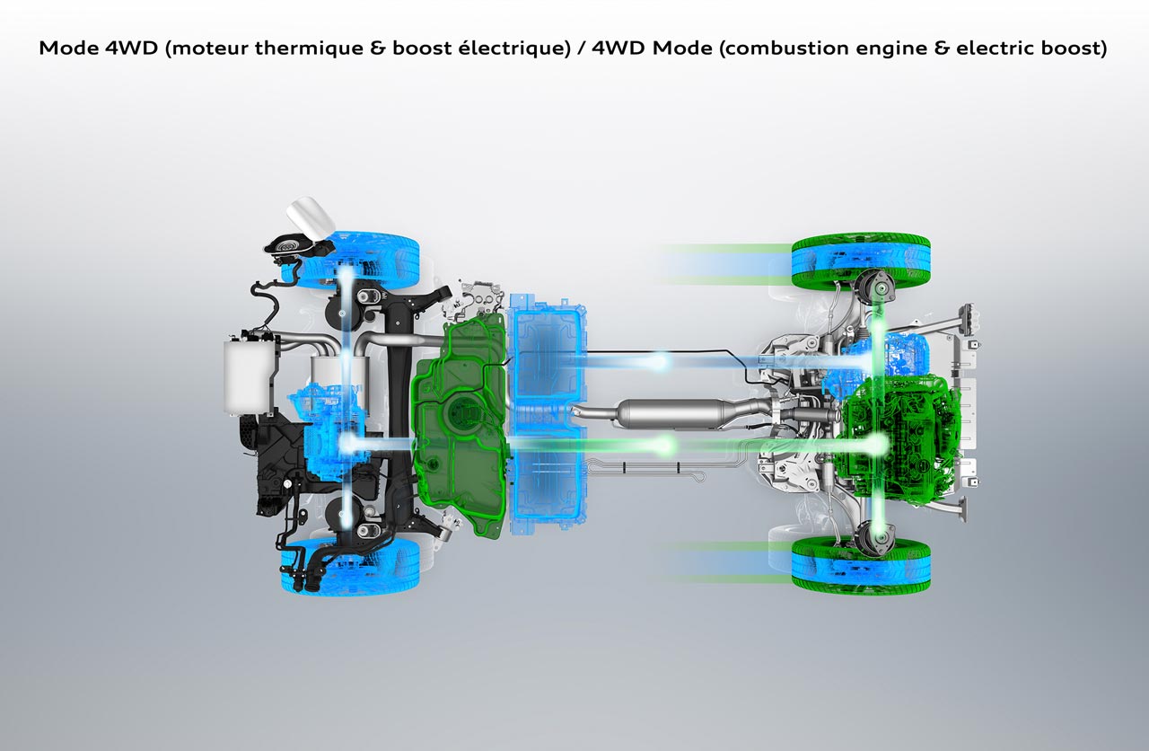 En la versión Hybrid4, el PureTech eleva la potencia hasta los 200 caballos y está acompañado por dos motores eléctricos con 109 CV cada uno y presentes en la parte delantera y trasera del vehículo, permitiendo la tracción integral, otro estreno del SUV.