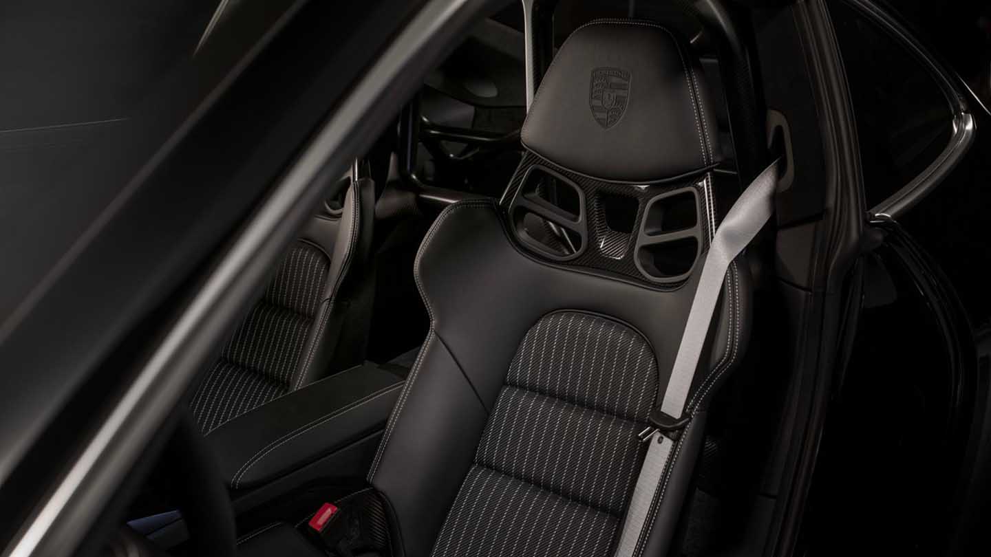 Puertas dentro, la nueva edición especial cuenta con asientos baquet construidos con plástico reforzado con fibra de carbono y el color verde clásico de Porsche para el tablero de instrumentos y el reloj del pack Sport Chrono.