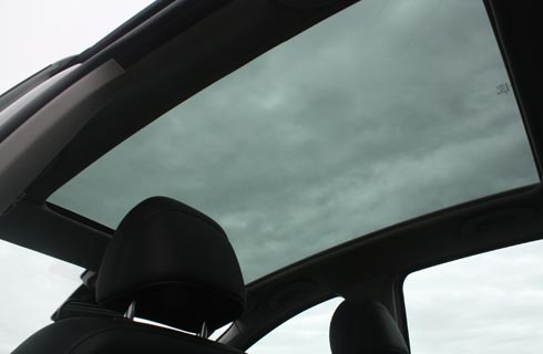 En el frente, la amplia toma frontal se ve flanqueada por los faros elípticos que acentúan el estilo felino, bien típico de la marca, y un nuevo sistema de luces diurnas de led en forma de boomerang, que le dan un toque tecnológico. La vista frontal también se ve enriquecida por el imponente techo cielo, que se extiende desde el parabrisas, hasta las plazas traseras, contribuyendo al estilo moderno del vehículo.