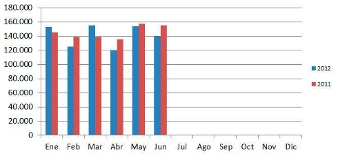 En junio la venta llegó a las 140.208 unidades, una baja del 9,58% con respecto a igual mes de 2011 (155.070 unidades). Si lo comparamos con el mes de mayo (153.296 unidades), la venta bajó un 8,54%%.