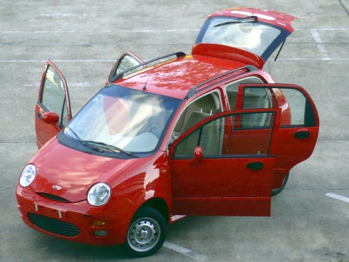 ¿Quién no recuerda al Daewoo Matiz de los 90? Al igual que el Chevrolet Spark, y salvando las diferencias, en las líneas de ese modelo está basado el QQ. El lateral se asemeja demasiado al de ambos productos, por supuesto que el de Chery aporta lo suyo. El frontal muestra su personalidad en un conjunto atractivo a través de ópticas circulares, seguidas por luces de giro y faros antiniebla colocados verticalmente en el paragolpes.