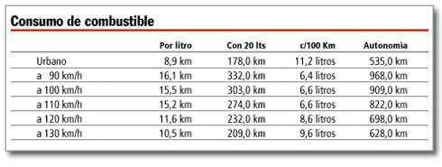 Las mismas variables nombradas en el párrafo anterior tienen relación con los valores de consumo, en parte compensados con la excelente tecnología del motor, haciéndolos lógicos en términos generales para este tipo de auto. En ciudad, algo que cada día se hace más difícil medir, fueron 11.2 litros cada 100 km; a 130 km/h en ruta, la máxima velocidad legal en la Panamericana, requirió 9.55 litros para la misma distancia y con los 60 litros del tanque, la autonomía supera los 600 km.